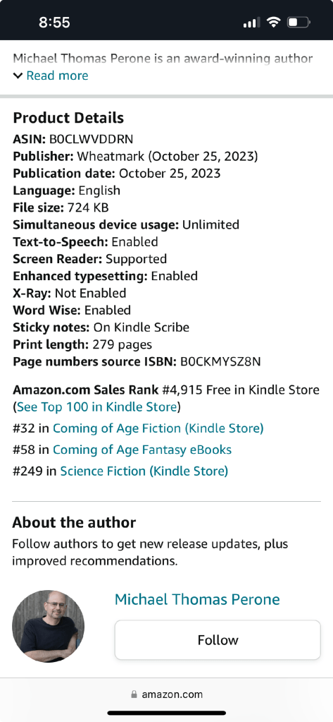 In other Déjà View news, my Kindle promotion last Saturday was quite successful. The book was #32 in the category of Coming of Age on Amazon’s Kindle store and #58 in the category of Coming of Age Fantasy eBooks.